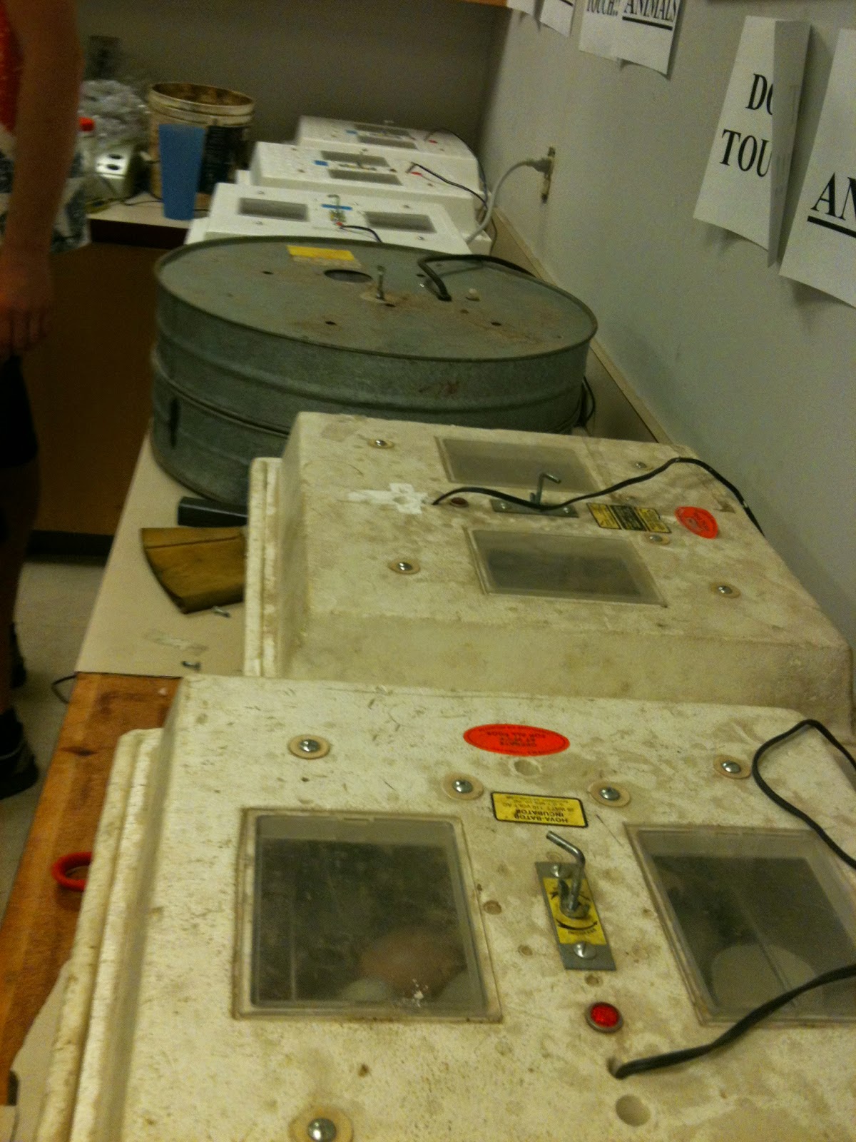 The entire hatch space, in the ag room, was filled with brooder boxes and heat lamps.